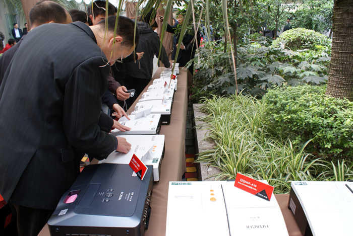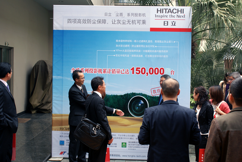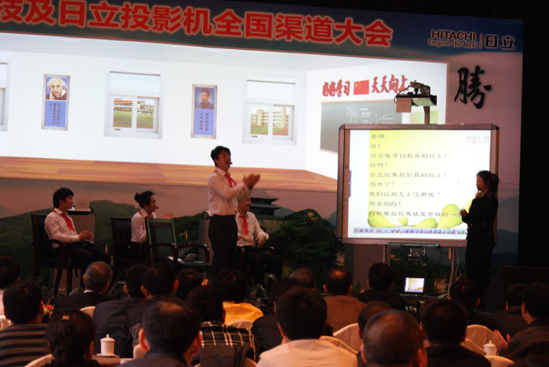 會議由日立投影機(jī)大陸總代理鴻合科技主辦,全國三百多家代理商濟(jì)濟(jì)一堂、共商市場大計(jì),氣氛熱烈隆重。會上總結(jié)了2009年日立投影機(jī)的市場和銷售狀況,并對2010年的市場進(jìn)行了深入分析探討;日立公司為更好的服務(wù)于中國市場并繼續(xù)保持市場占有率第一的地位,在會上宣布所展示的十余款新機(jī)型將陸續(xù)推出投放市場,并將繼續(xù)加大高端工程機(jī)型的研發(fā)力度,占領(lǐng)迅速崛起的高端投影市場;鴻合科技也把即將推出的白瓷電子白板、投影機(jī)燈泡、幕布、“窗景”數(shù)字告示系統(tǒng)等新產(chǎn)品悉數(shù)亮相。