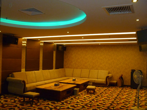 在本次企業文化項目中,電力公司為員工配備一整套的KTV娛樂包房設施,包括JBL音箱系統、夏普70寸液晶電視、頂級觸控屏點唱機及國際高端音頻處理設備(調音臺、功放、揚聲器)等。同時根據朗悅科技工作人員還根據現場建聲的特性,依據準確的數據制定音響的懸掛方式和音響品類的選擇。