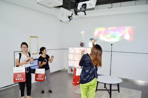 日立創新影像空間充分利用開闊空間,創造了面向商業、教室、家居等各種應用的精彩方案:迎接賓客的階梯投射與前臺墻面投影令人倍感親切,適合商業應用的8K巨幕廣告墻、酒瓶異形廣告牌方案引人矚目;面向美術館、音樂廳的變換燈、激光投影與鋼琴Mapping方案則極具創意;適合商業樣板間和家具商場的軌道鏡Mapping意趣盎然;模擬高爾夫球方案則是成熟的商業應用。觀景窗、地面廣告、豎投廣告等方案是創意與商業的精彩結合;數字餐廳實現視覺與味覺的巧妙融合;智能投影壁燈適合打造創意方案等備受與會嘉賓的關注。