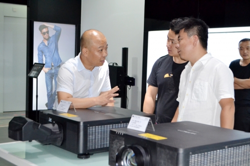 來賓與朗悅工作人員進行交流 日立創新影像空間坐落于酒仙橋南路創E+社區內,是投影機行業為數不多的大型展廳。2018年7月6日,日立創新影像空間舉行盛大開業典禮。此次巡展也是展廳自開業以來首次對外開外并舉辦的一次重要活動。