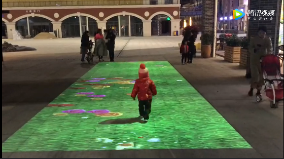 此設計,突出互動體驗與感悟,實現了觀眾與畫面的完美互動。很多觀眾及小朋友都被這個有趣的創意所吸引。讓往來的游客們漫步花海,仿佛穿梭于百花叢中,腳步卷起花瓣飄舞。吸引游客特別是小朋友們上場“比試”一番,歡聲笑語為夜晚增色。多臺投影機亮度控制技術、幾何校正功能、讓細節再現更為栩栩如生。