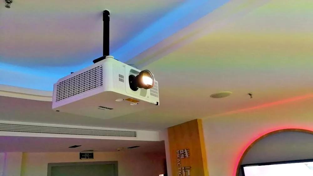作為此次項目的“核心”,麥克賽爾DLP激光工程投影機MMP-WL620U,采用藍色激光二極管和熒光輪的結合實現(xiàn)了高亮度。投影畫面不但明亮、清晰且色彩亮麗、生動。相較于傳統(tǒng)的燈泡光源投影機,不存在更換燈泡光源的問題,有效地降低了維護成本。MMP-WL620U投影機還能實現(xiàn)360°全方位投影,任意角度靈活性安裝,如果片源是豎直形的片源,可以直接將該投影機垂直放置即可實現(xiàn)投影(縱向投影)。